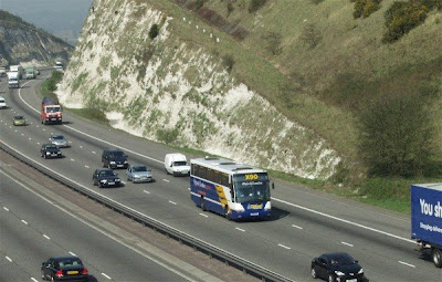 The motorway makes a dramatic exit from Bucks to Oxfordshire down a steep cutting through the chalk escarpment. It's the scene that one sees in that opening tracking shot of the "Vicar of Dibley".